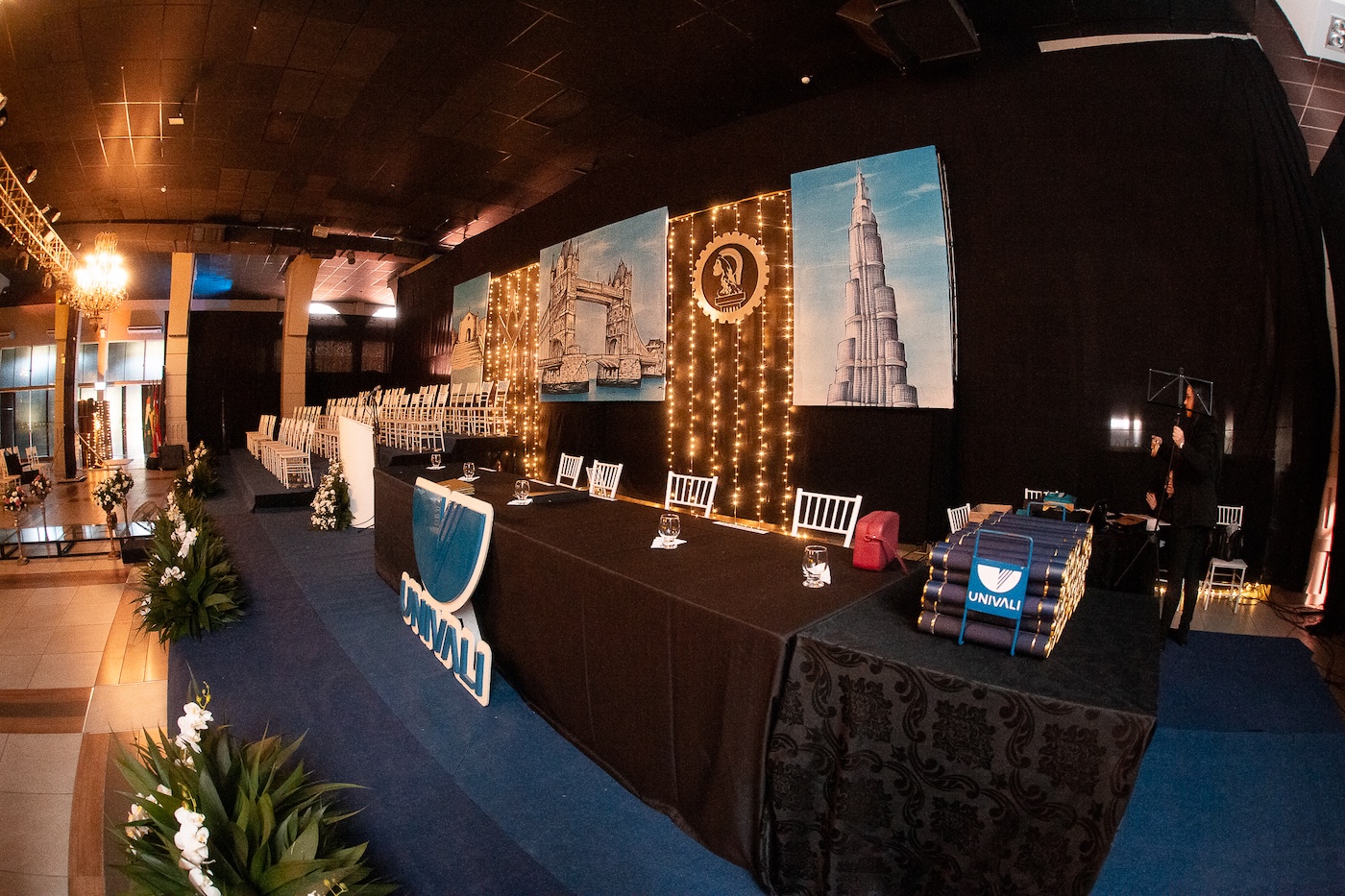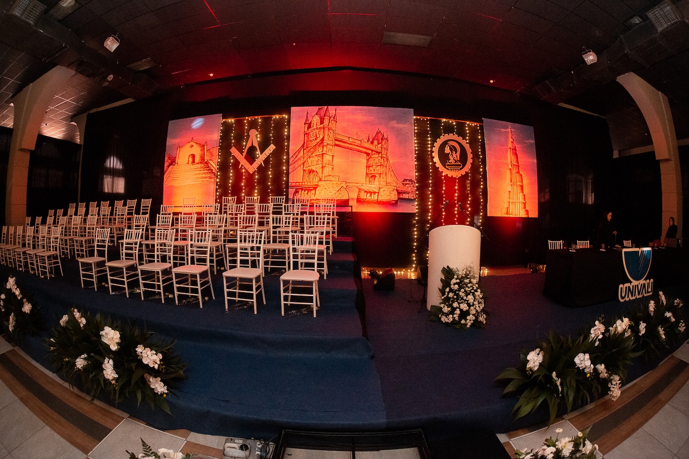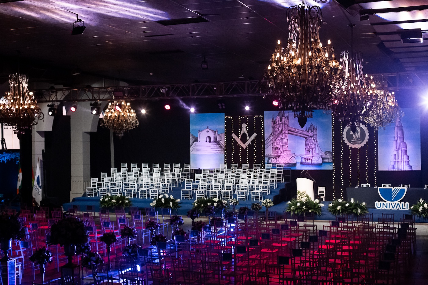 • Audiovisual (som, iluminação e vídeo): placar/cronômetro, sonorização e luz sob projeto.
